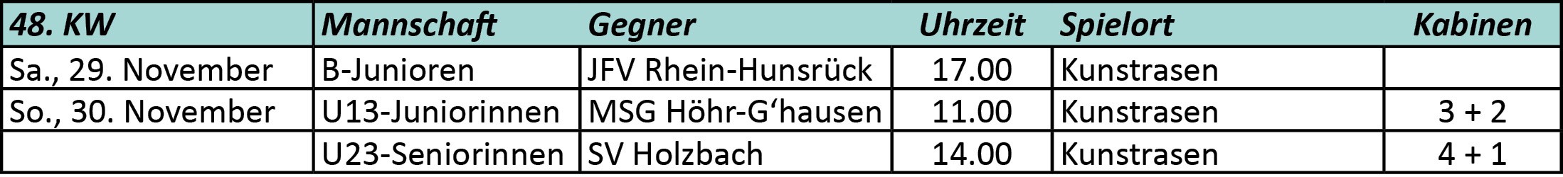 Spielplan + Tabelle C-Junioren