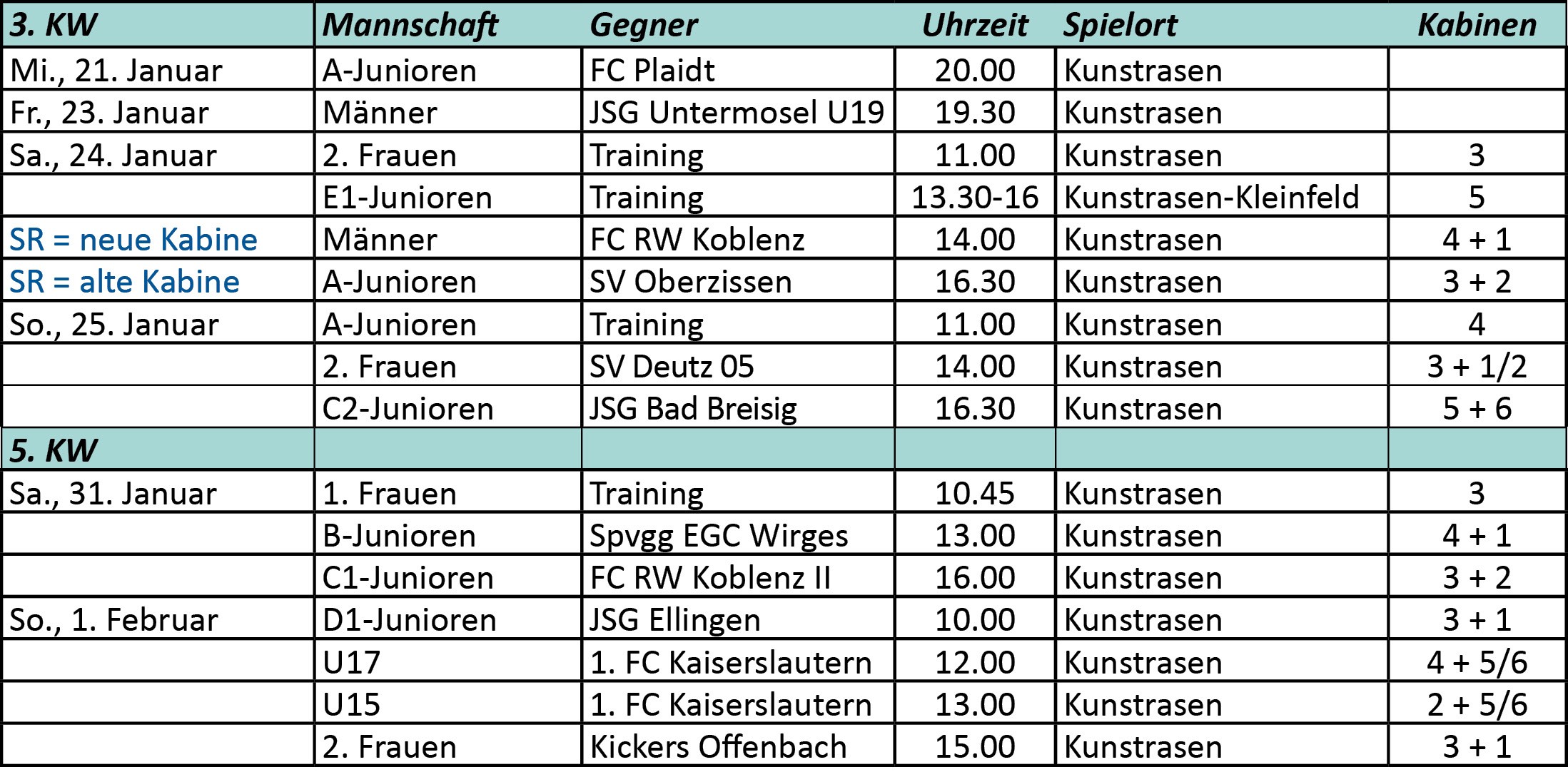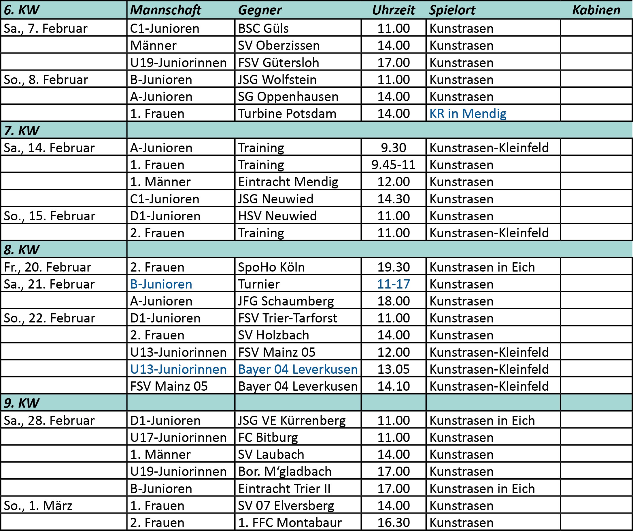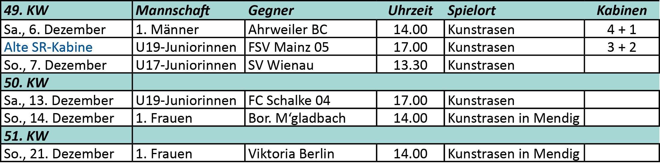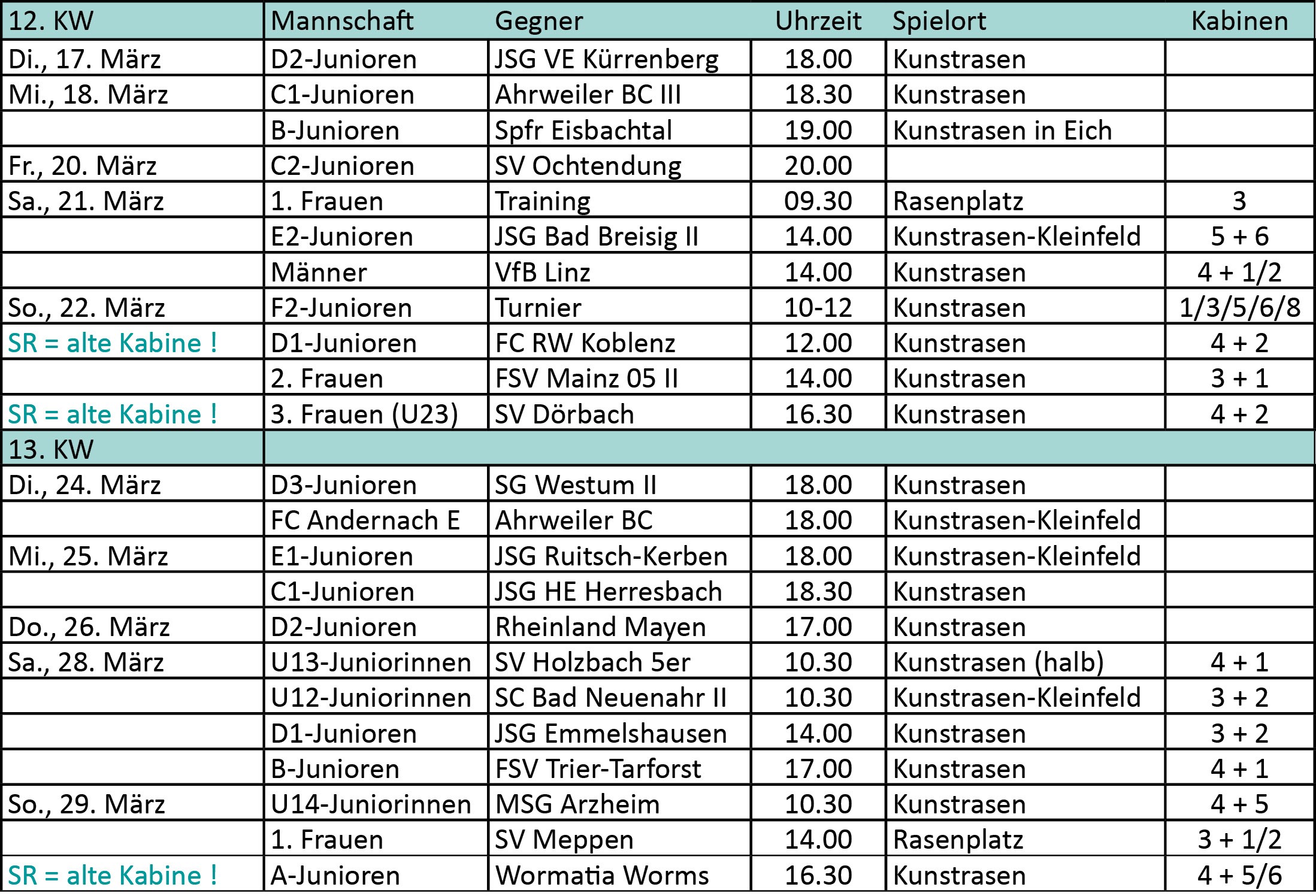 Vereinsspielplan