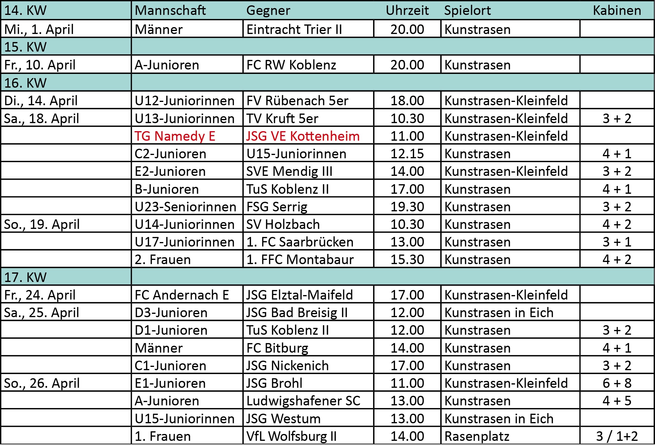 Heimspielkalender